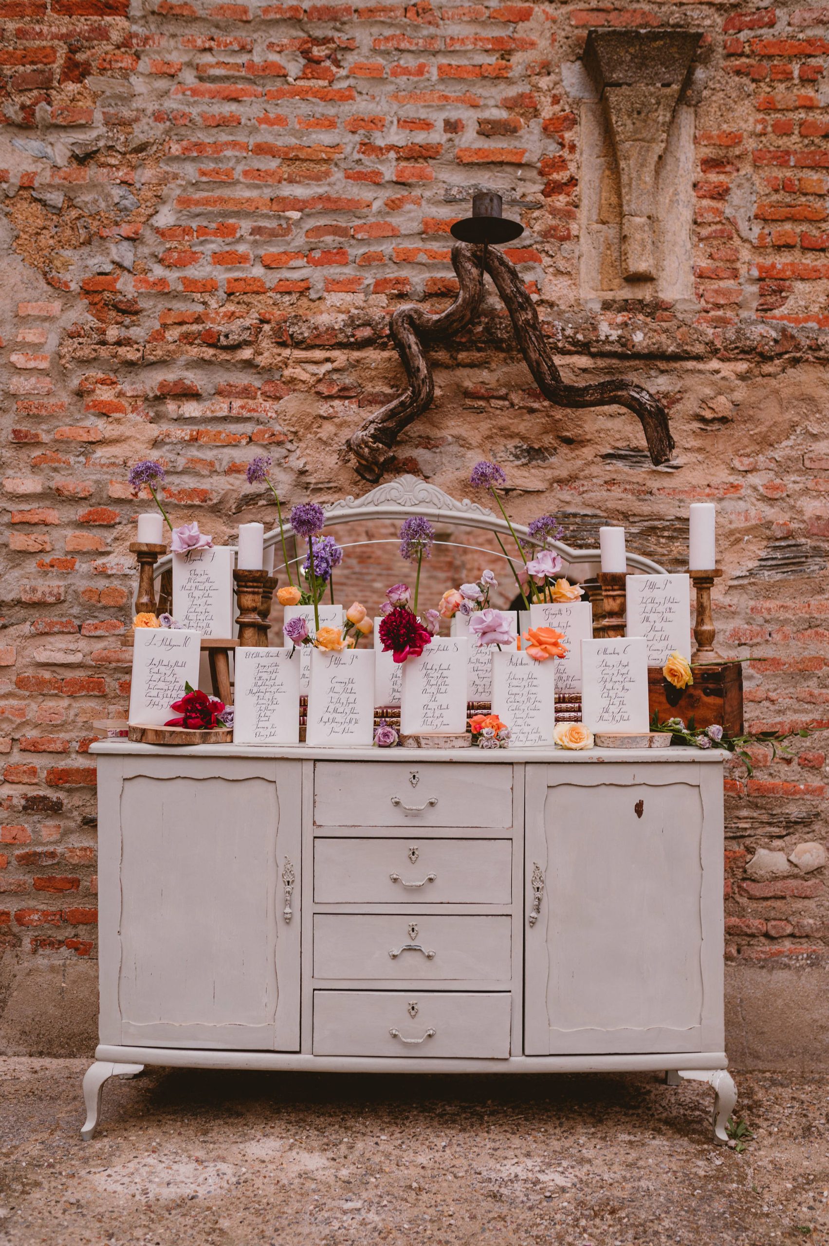 Seating realizado con libros con el nombre de los invitados escrito en la portada.